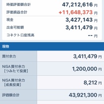 資産状況・資産(2024年末) :33,967,639円・現在資産(251114):46,577,663円・税引き前利益:+12,610,024円(+37.12%)(税引き後配当金+842,082円を含む、入金除く、去年末比)資産内訳・信用評価損益:-8,528円・個別株(現物):45,383,550円・現金:1,202,641円・信用買 ...