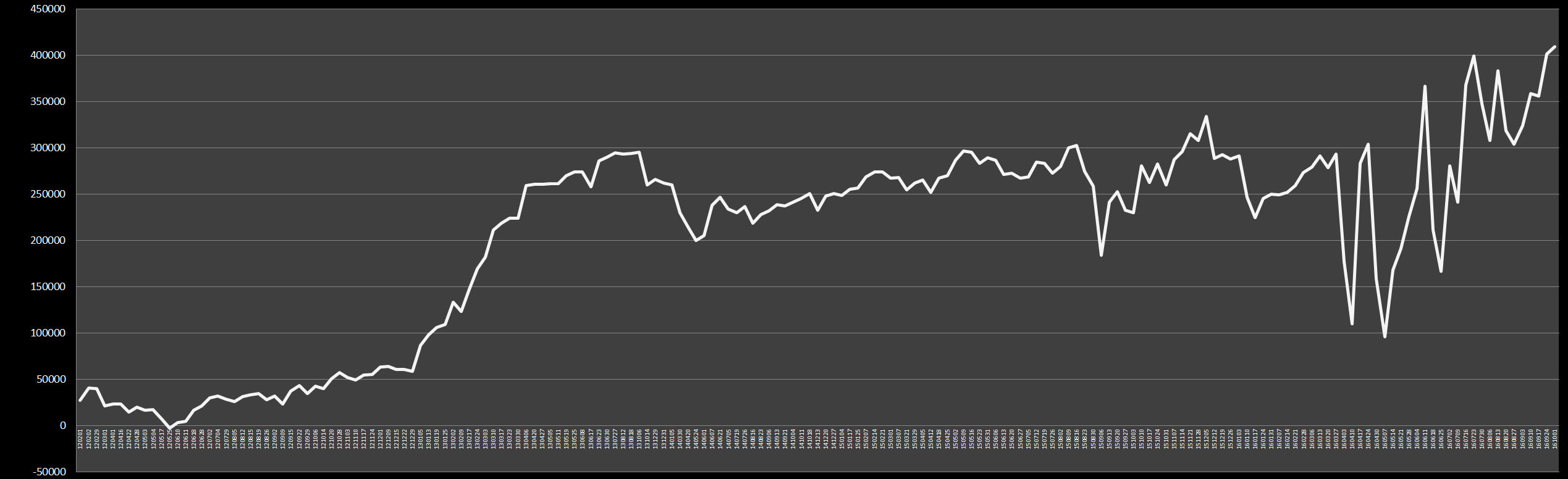 クロス円の多くは、アベノミクスで、上昇した分のほとんどが、下落して、元の価格に