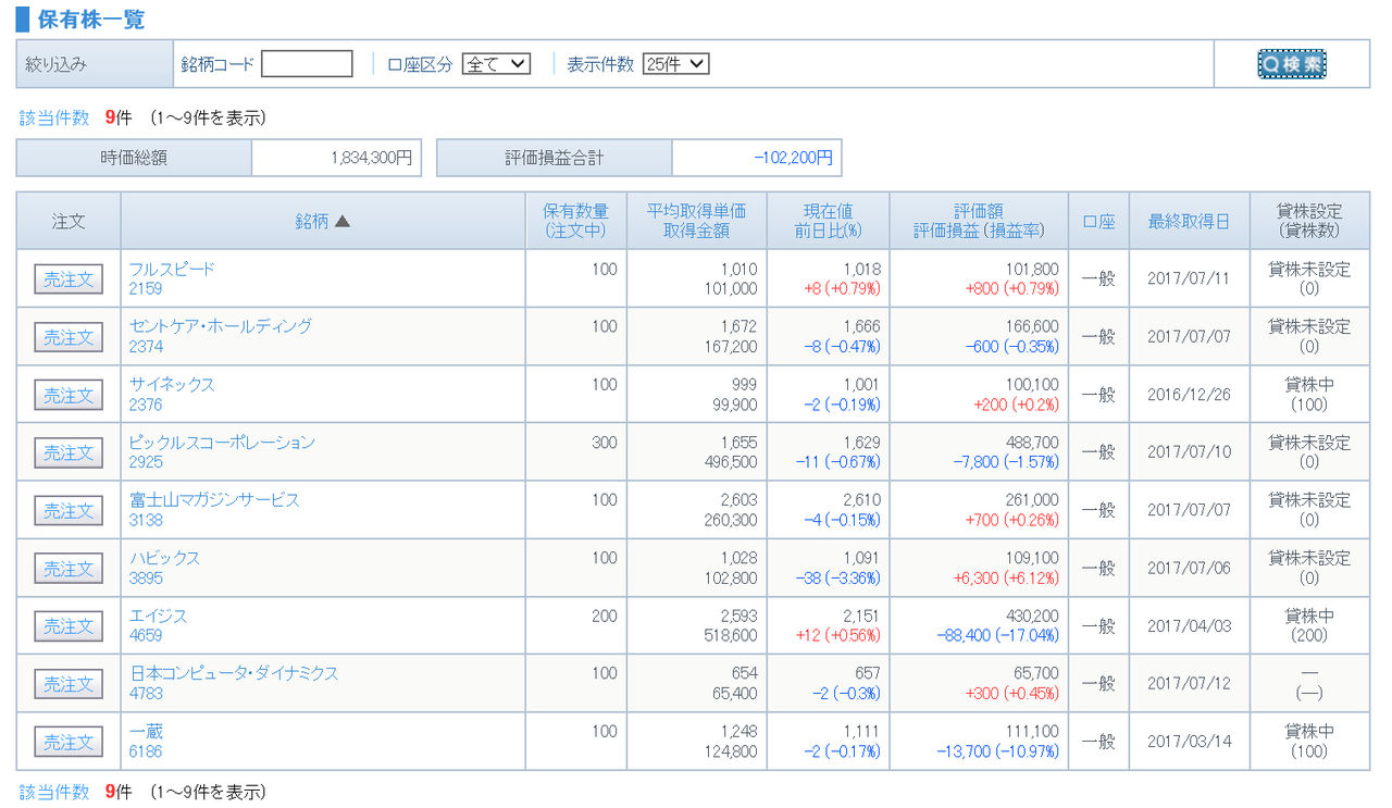 一方、PERが保有株の中で高いダイオーズ100株、フルスピード100株、豆蔵ホールディングス100株を売却した。