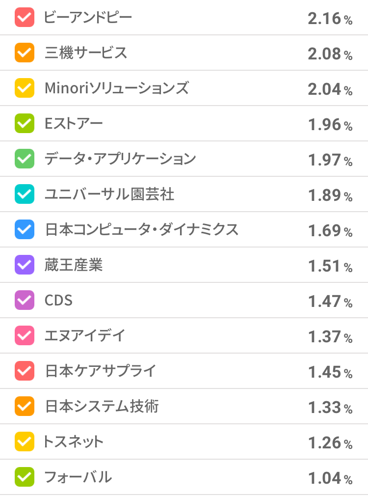 一方で、保有比率が低かったものを少し買い増しした。また、四季報を読んで調べた会社の株を少しだけ購入した。