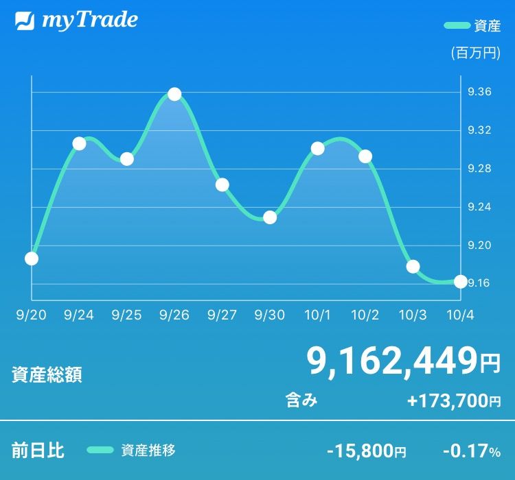 今週は、円高になり、日経平均が大きく下落し、保有株全体も下落した。アメリカ株の株価が大きく動いた。