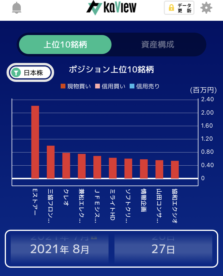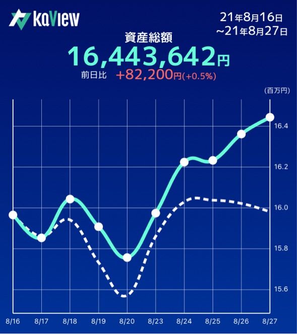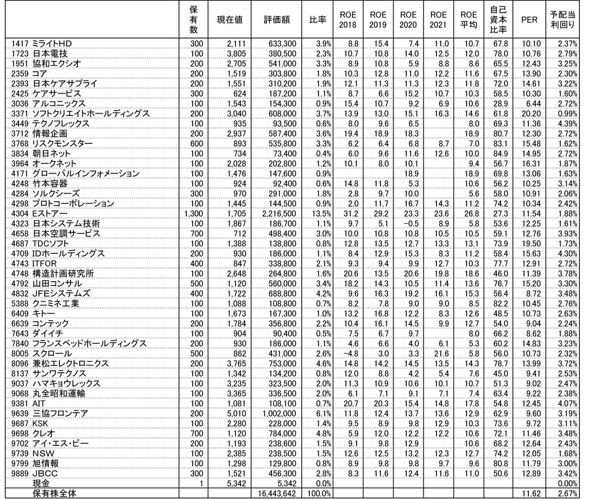 TOPIXが大きく上昇し、マザーズ指数が極端に大きく上昇し、保有株全体の株価も大きく上昇した。
