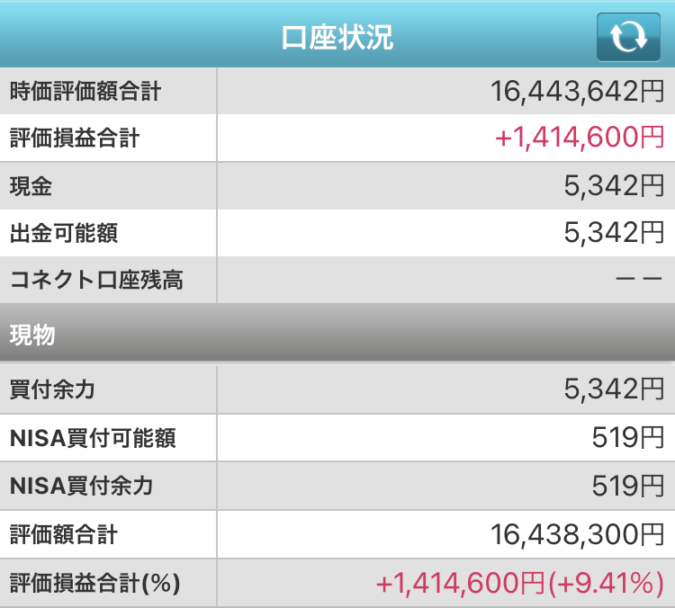税引き前利益(税引後配当金と税引前貸株金利+221,652円(+1.6%)を含む、入金除く、去年末比):