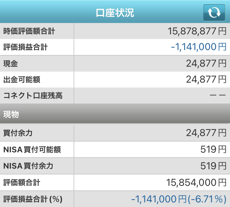 TOPIXが大きく下落し、保有株全体の株価も大きく下落した。