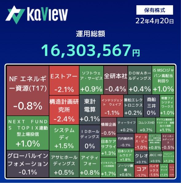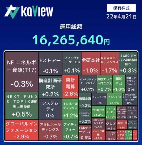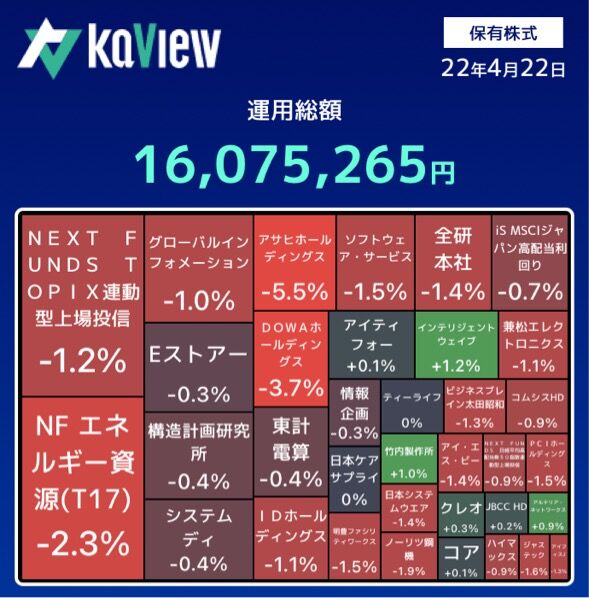 保有株全体の株価は、下落した。
