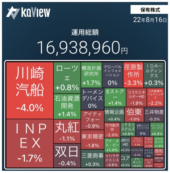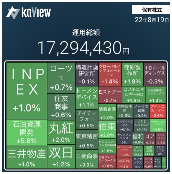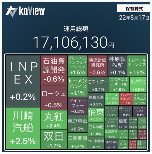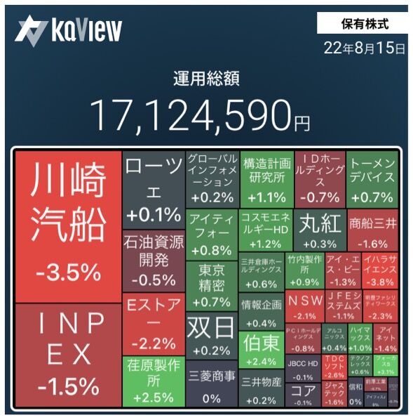保有株全体の株価は、少し上昇した。