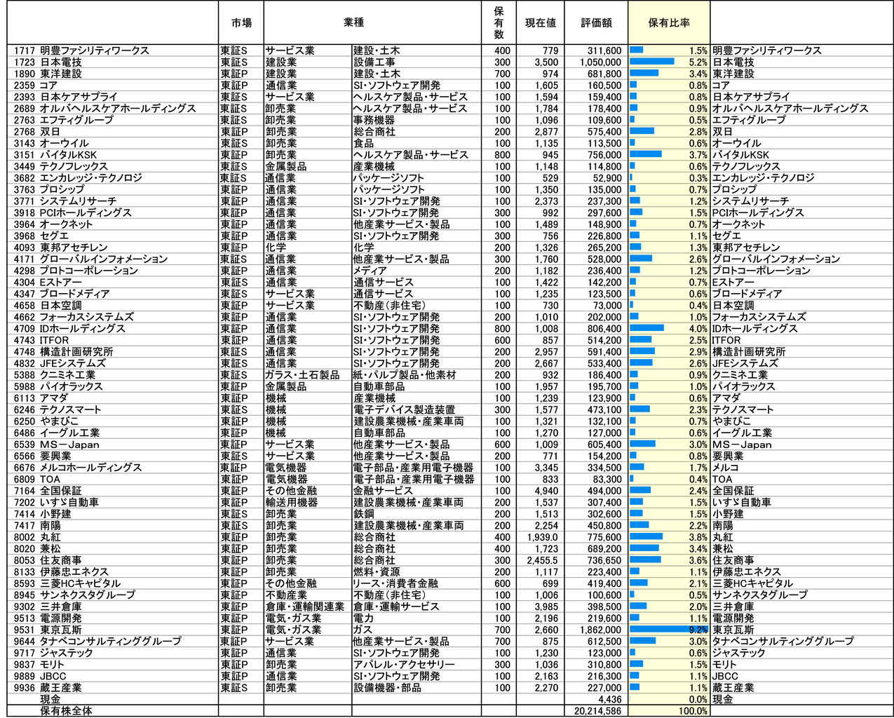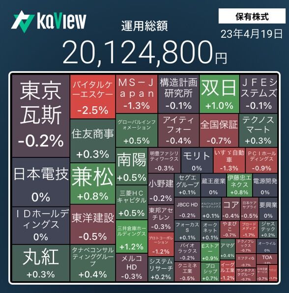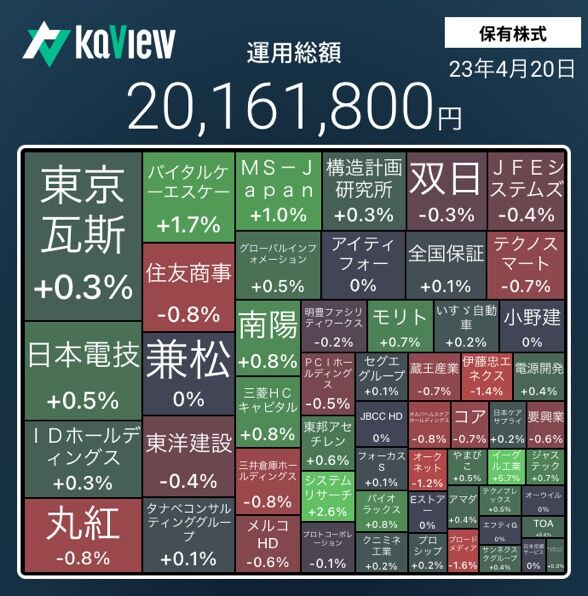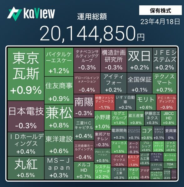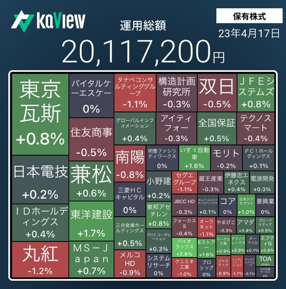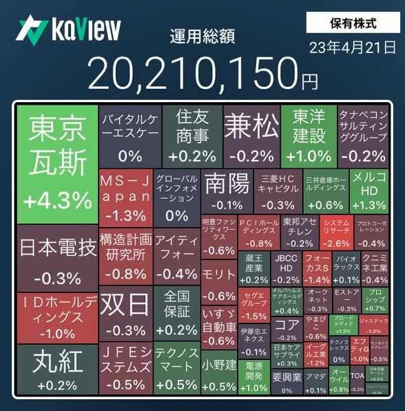TOPIXが上昇して、保有株も上昇した。