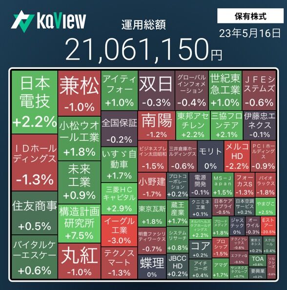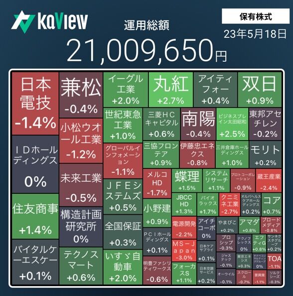 今週は、TOPIXが極端に大きく上昇したが、保有株はあまり上昇しなかった。
