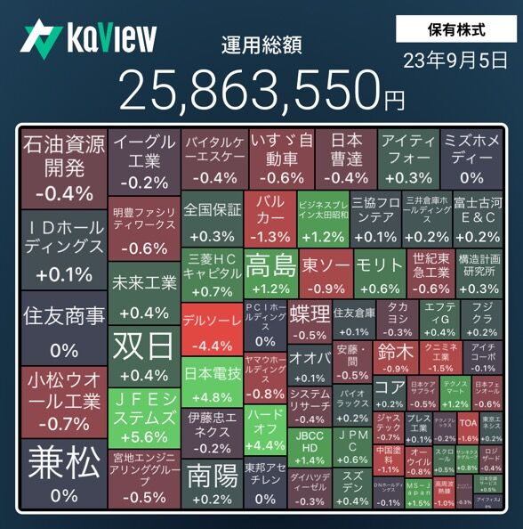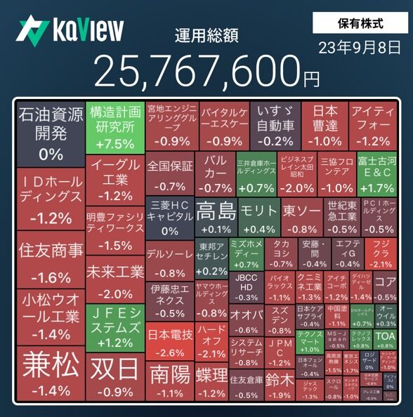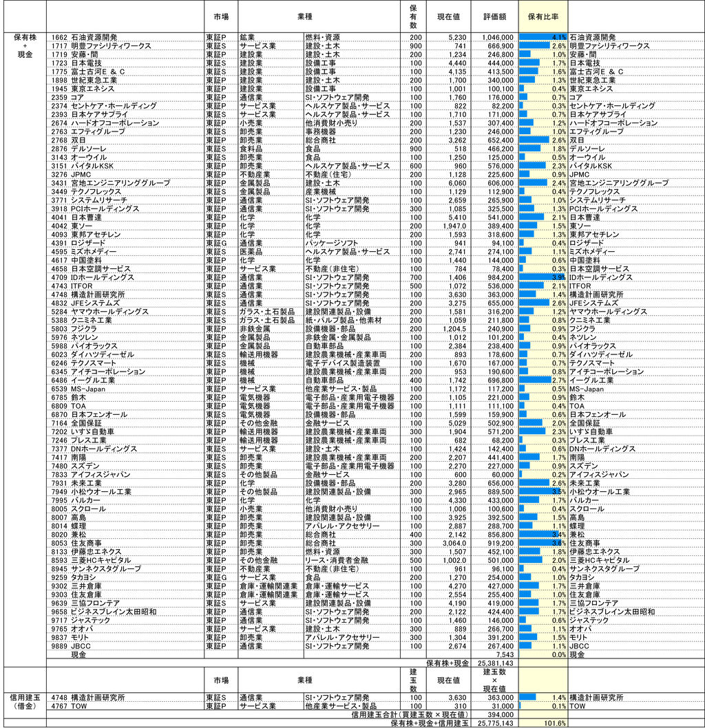 今週もTOPIXが上昇して、保有株も上昇した。