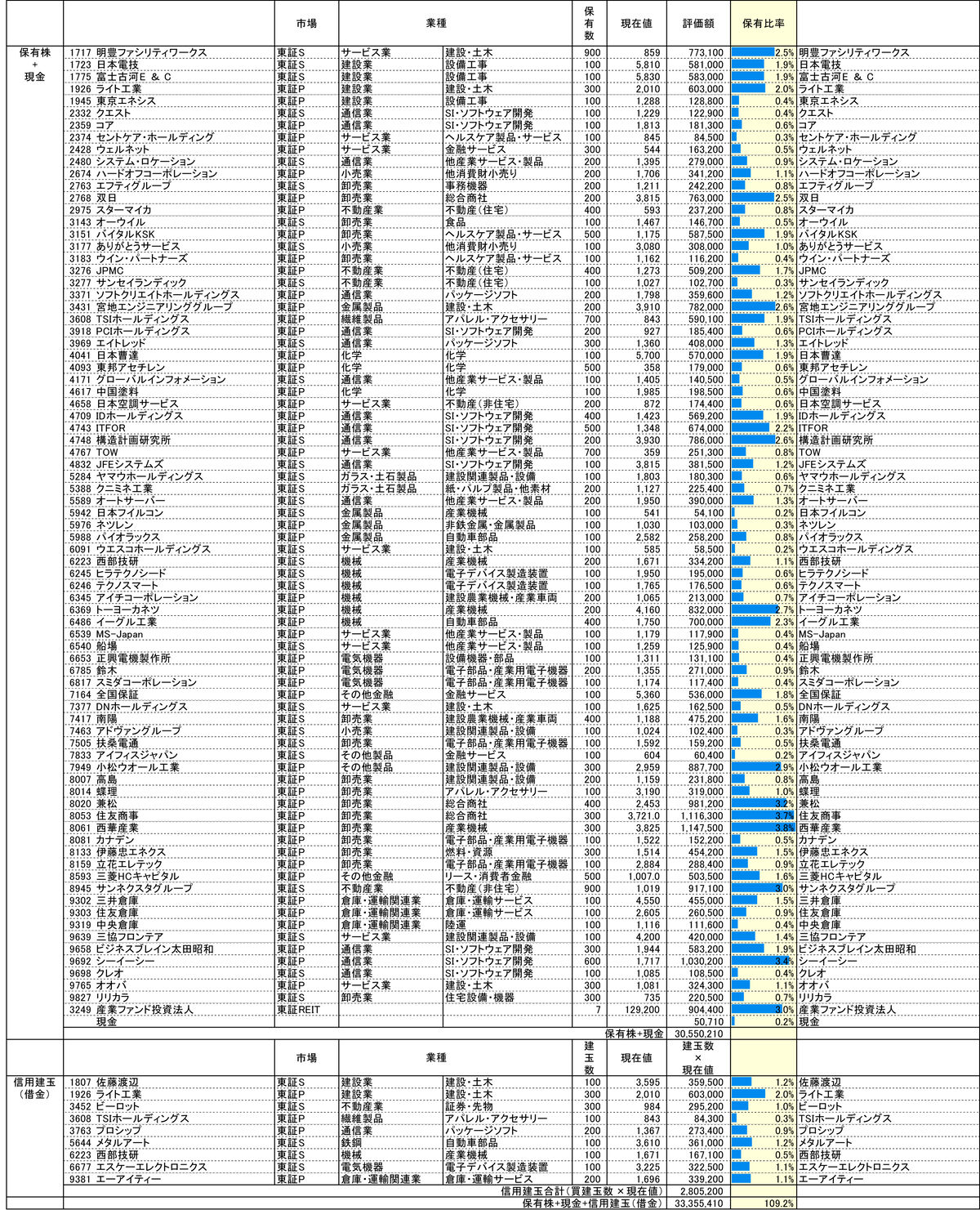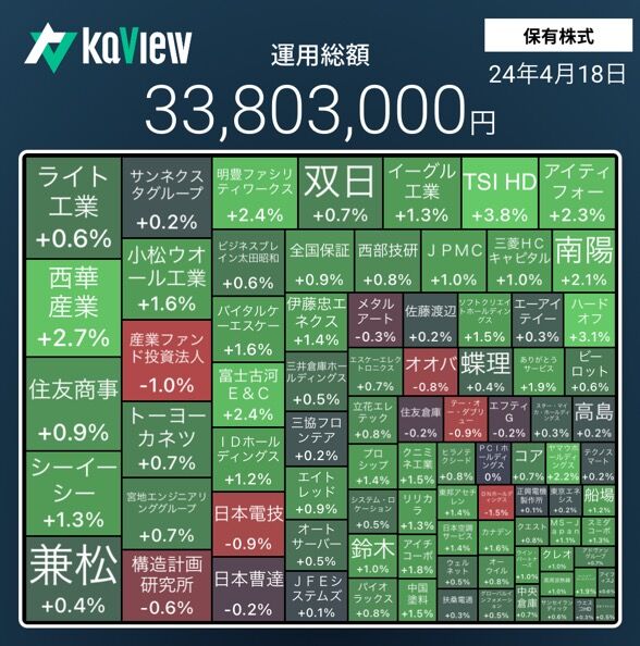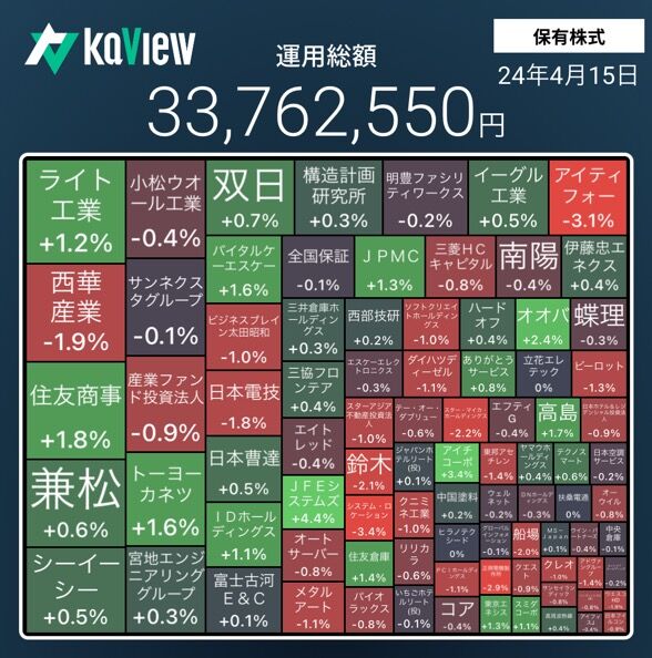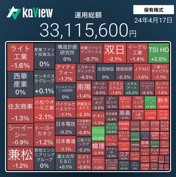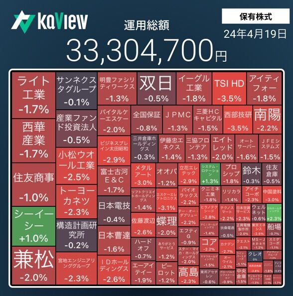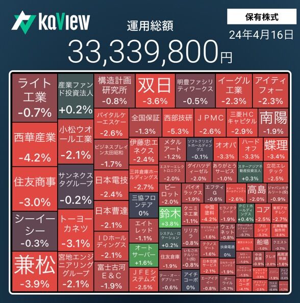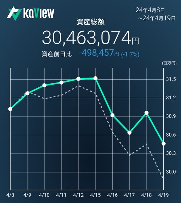保有株全体の株価も極端に大きく下落した。