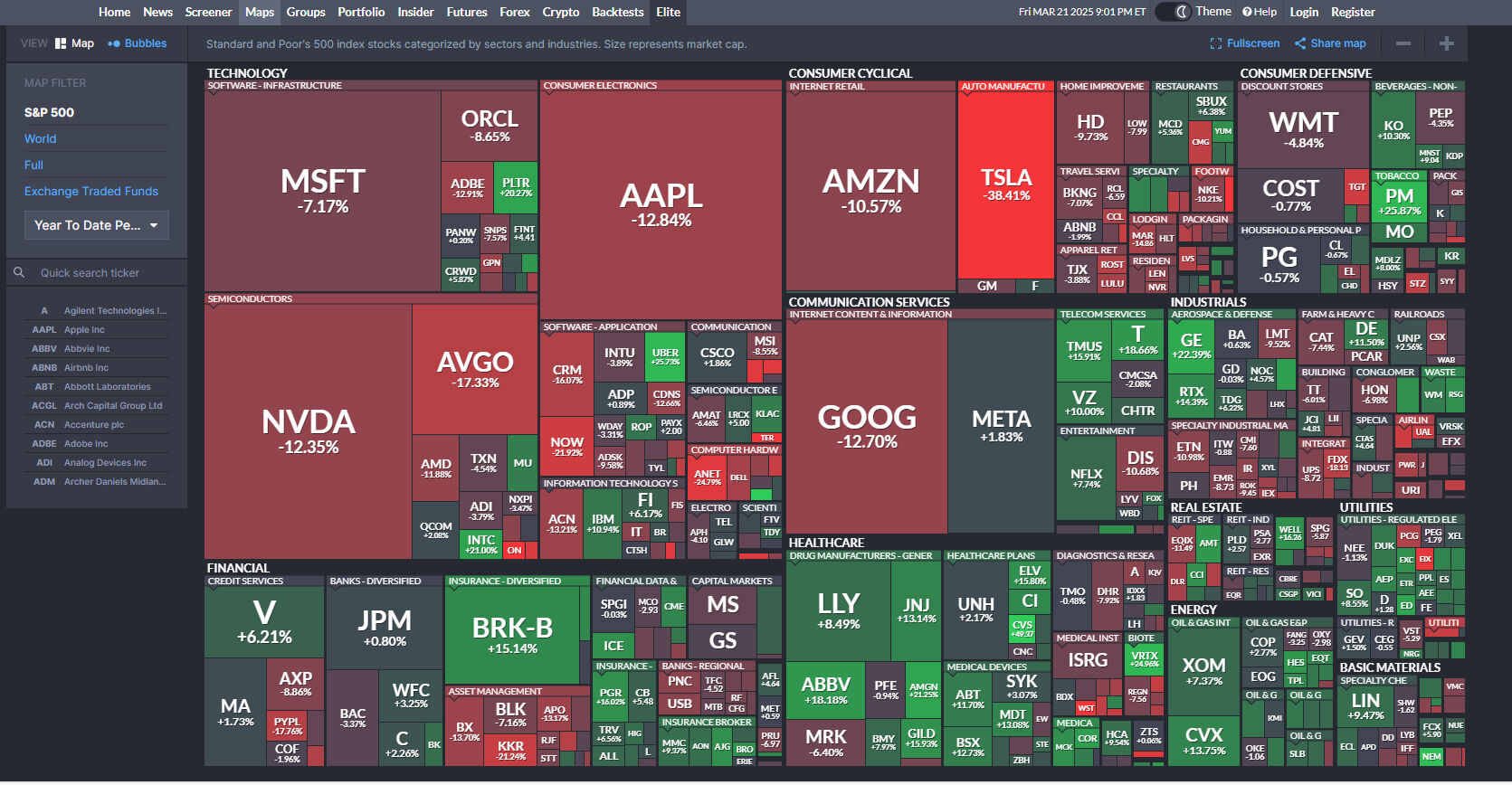 アメリカ株の年初来パフォーマンスを見ている。
