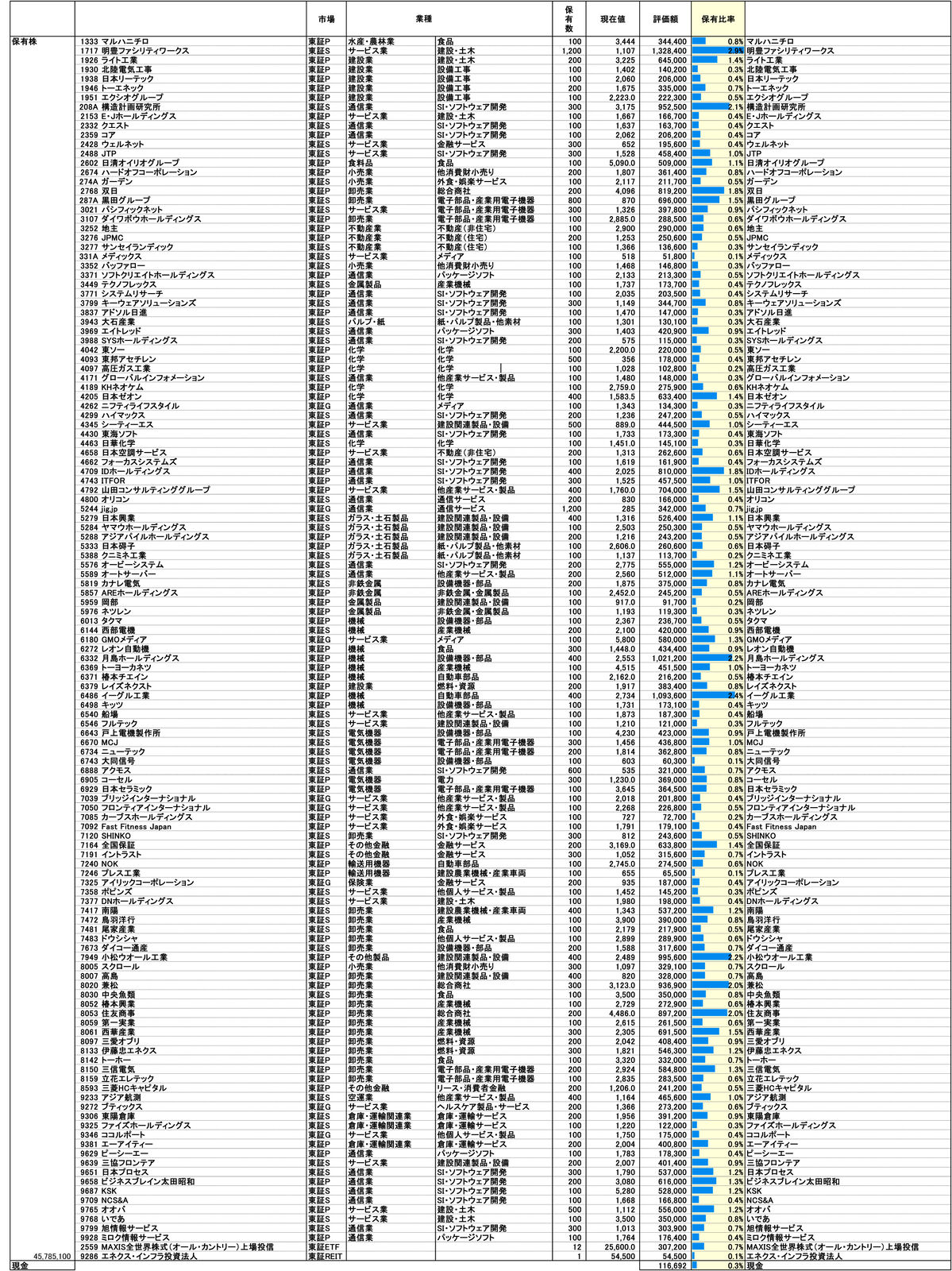 ・個別株(現物):45,785,100円