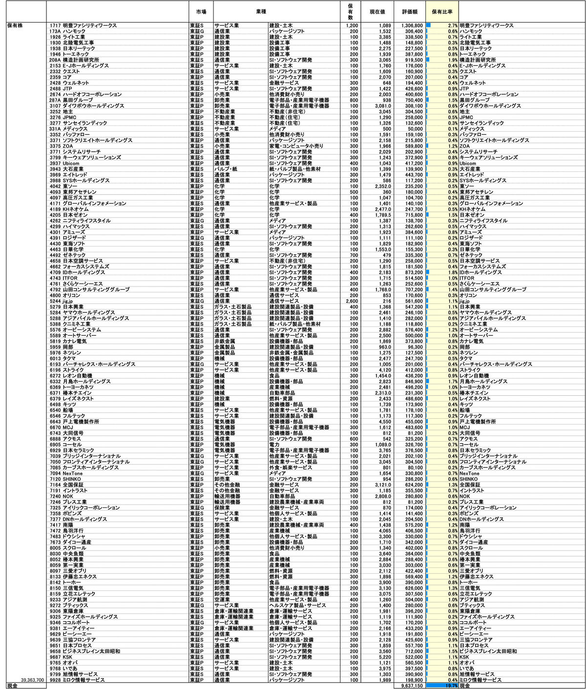 ・個別株(現物):39,363,700円